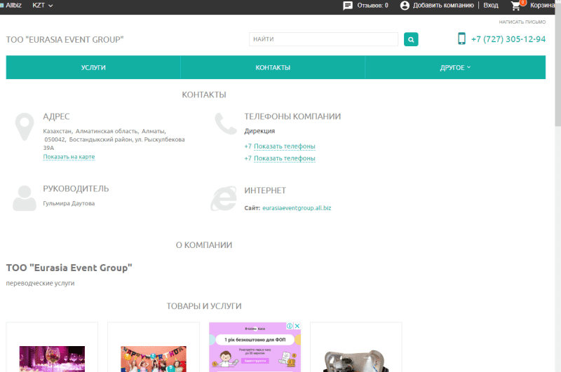 ул. Жолдасбекова 9/2, ТЦ Евразия, оф. 306, Алматы