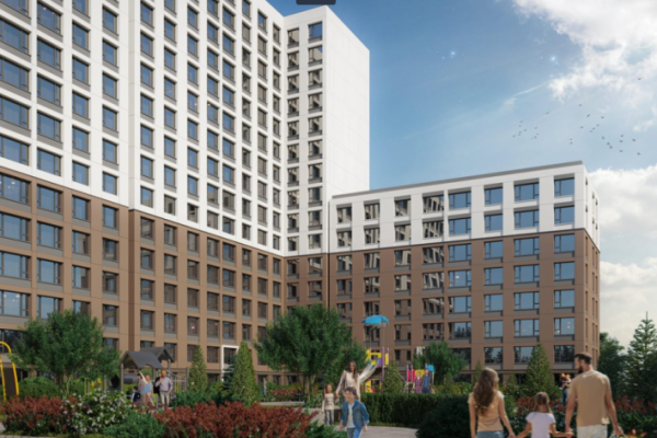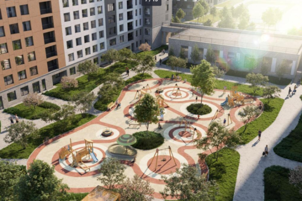 В комплексе будет просторный двор с прогулочными дорожками и элементами ландшафтного озеленения, а также workout-зоны и детские городки из экоматериалов.